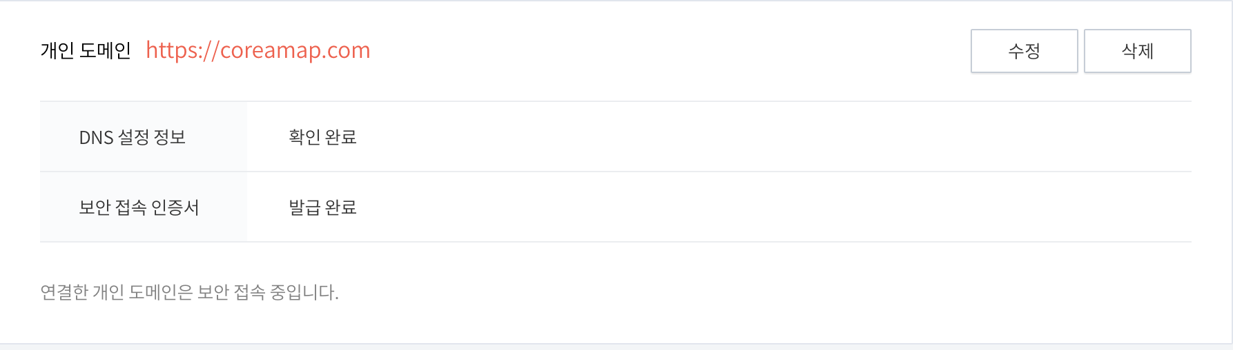 그리고 이 전달이라는 부분도 내 도메인 coreamap.com 을 입력하면 티스토리 XXX.tistory.com 으로 자동 리디렉션이 되는거라서 의미가 없다. 건들지 말자.