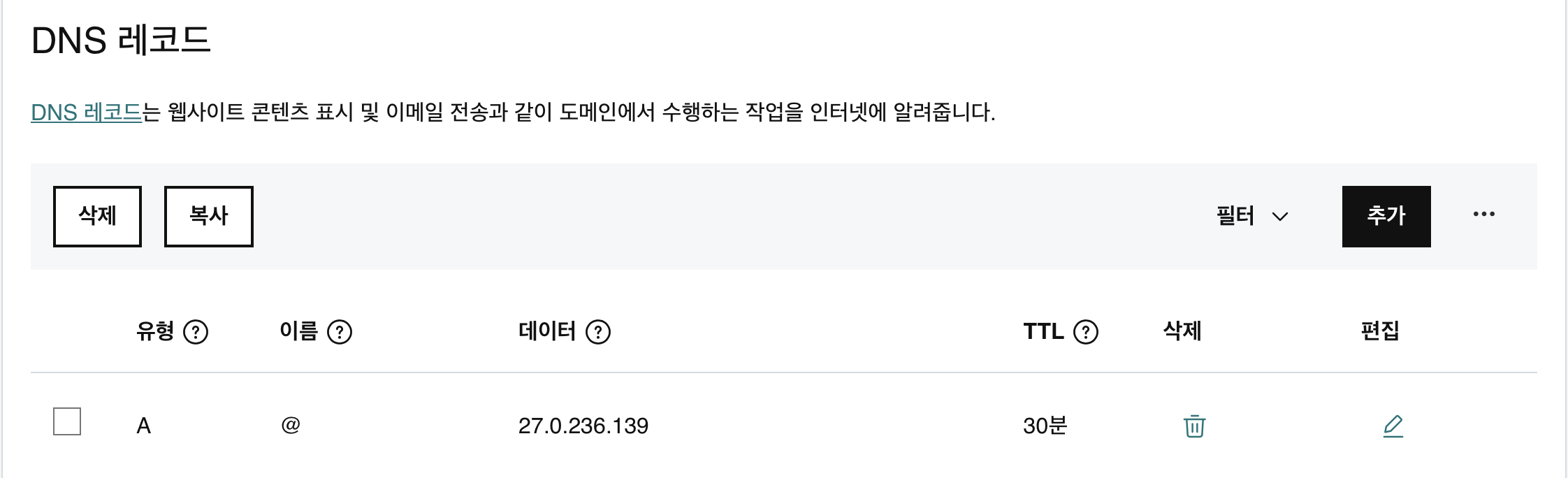 DNS 레코드에서 A레코드만 설정하면 된다.
