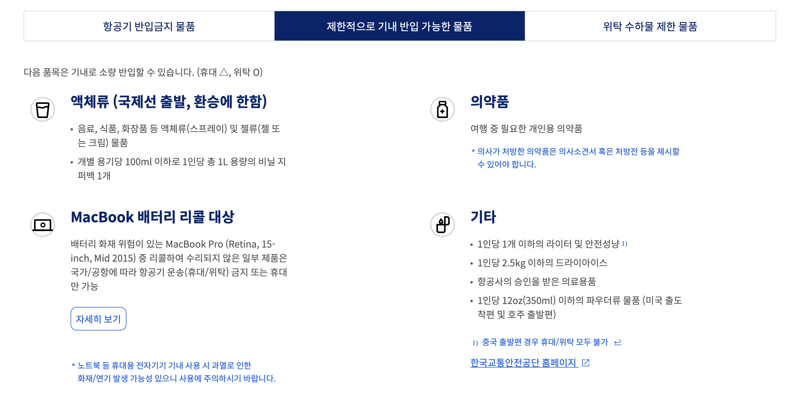 그런데 규정에는 개인 미용 위생용 스프레이 제품은 100ml 이하면 반입 가능, 초과는 불가능이고 위탁수하물로 부치면 되는 건데 항공사에서 자체적으로 안된다고 하면 어쩔 도리가 없다. 아무리 따지고 들어봐야 손해보는건 나.