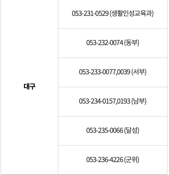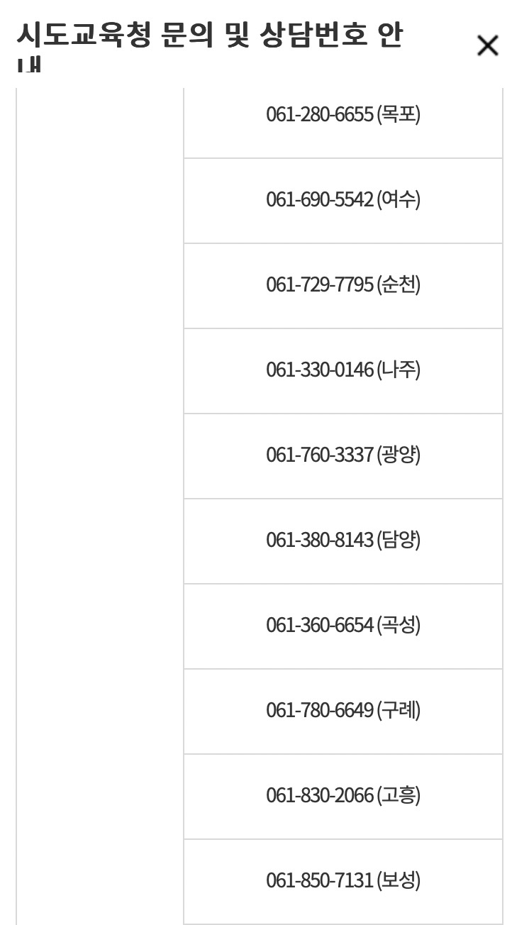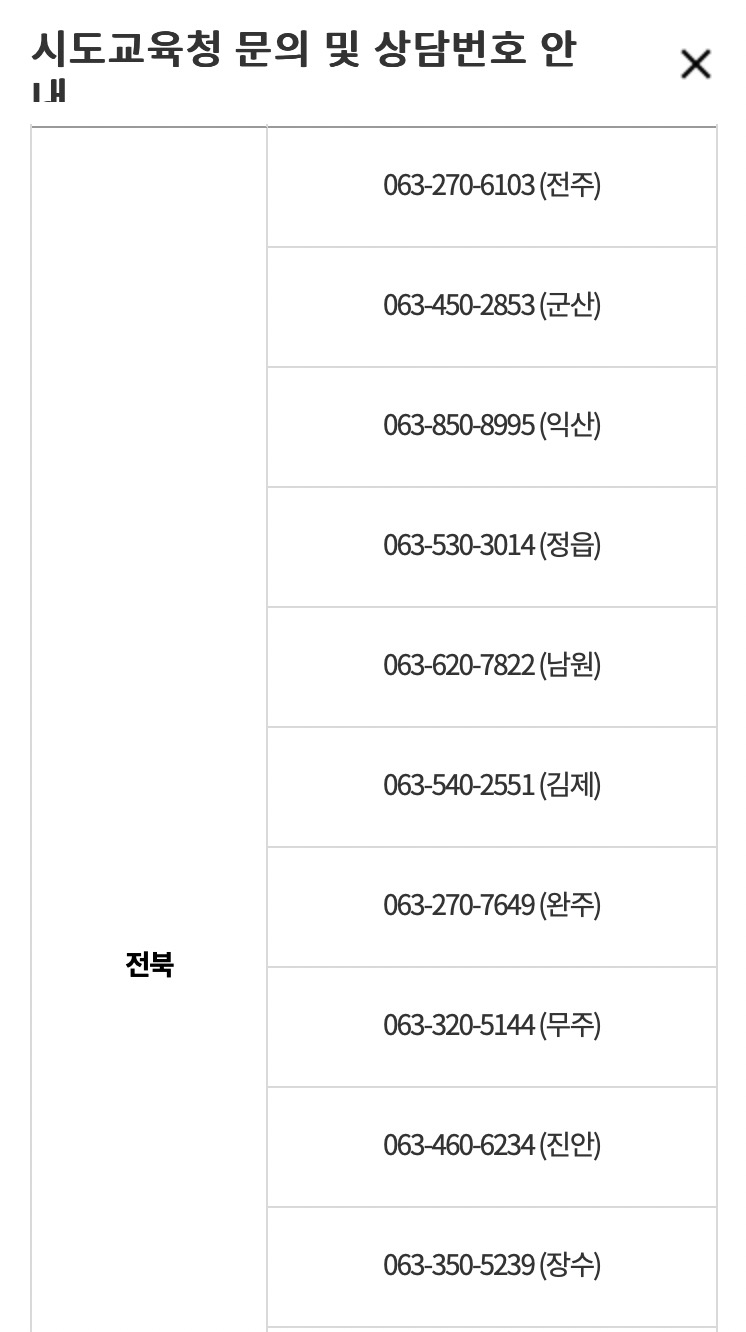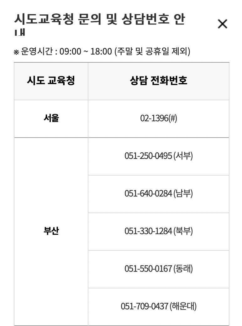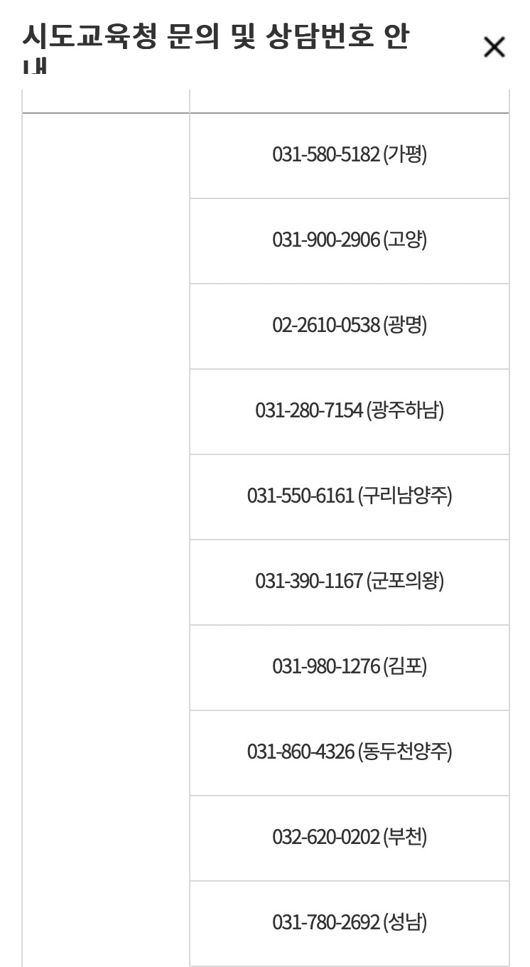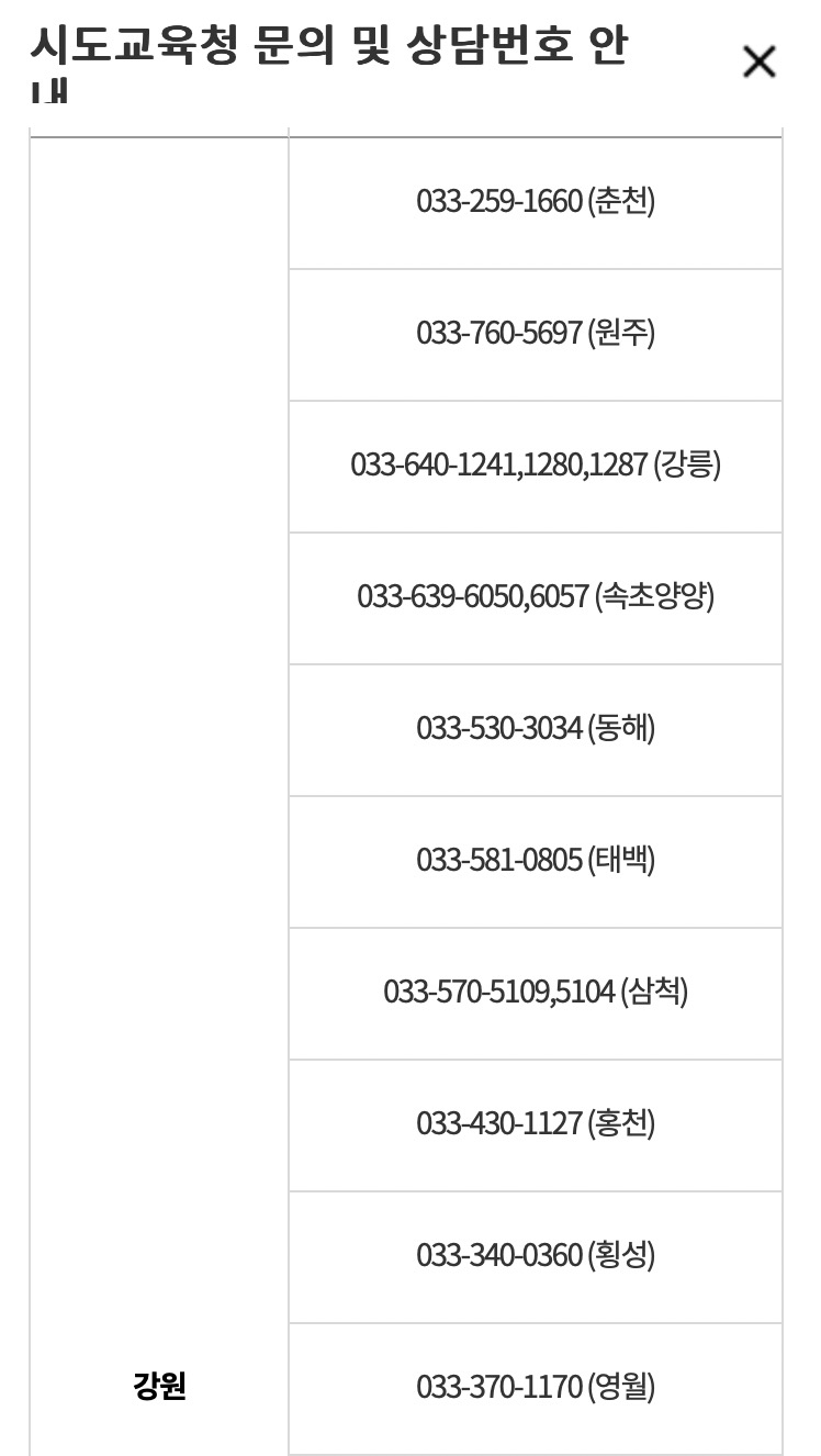 이외 관련문의사항이 있는 경우 아래 해당하는 시도교육청으로 문의하시기 바랍니다.
