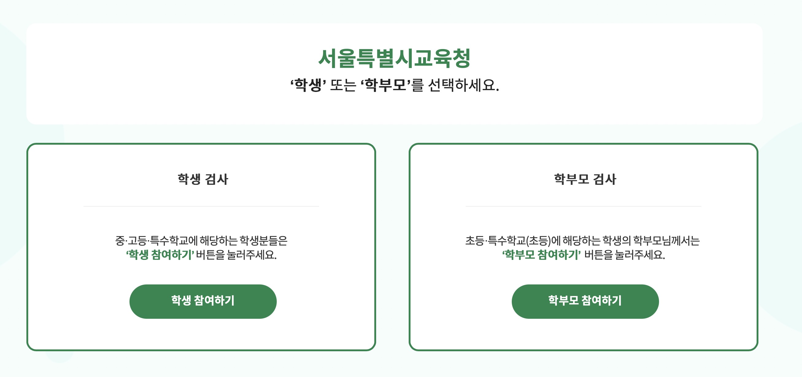 온라인 서면 검사는 : mom.eduro.go.kr 을 통해 초등학교 학생자녀를 둔 부모님, 중고등학교1학년 학생들이 참여할 수 있습니다.