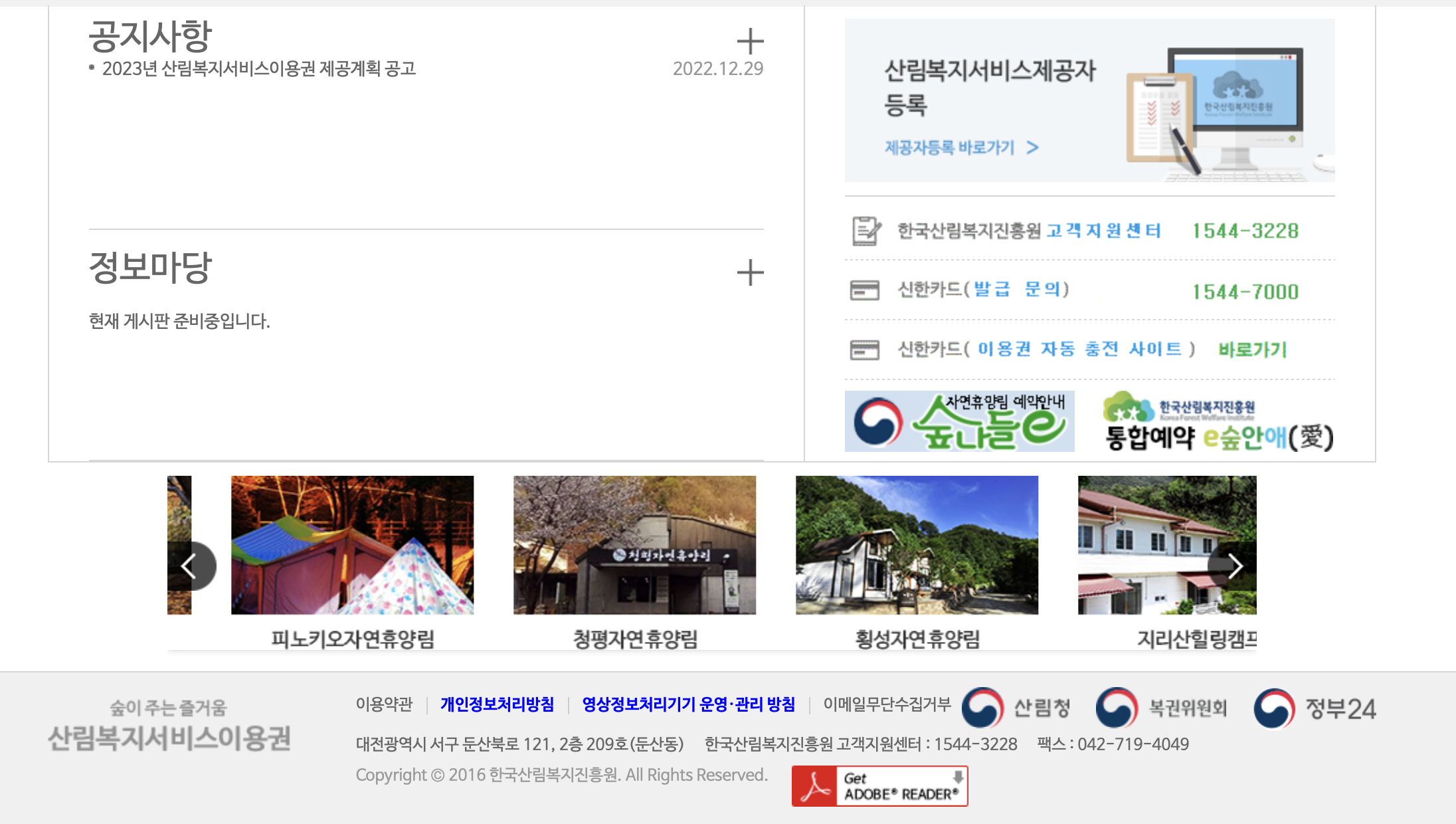 사용가능 시설안내 산림복지서비스이용시스템의 다양한 소식들을 전해드립니다. -->