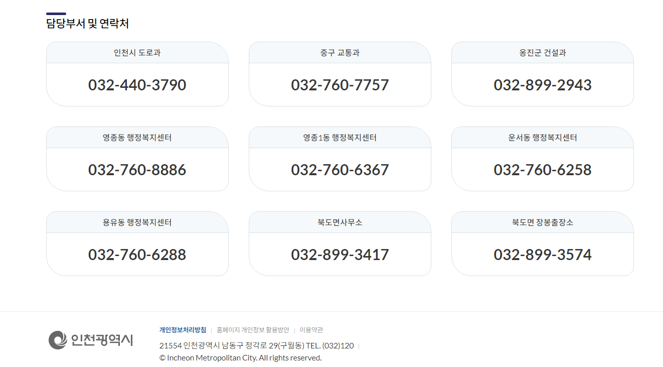 영종·용유·북도면 지역주민 통행료 지원 관려 문의