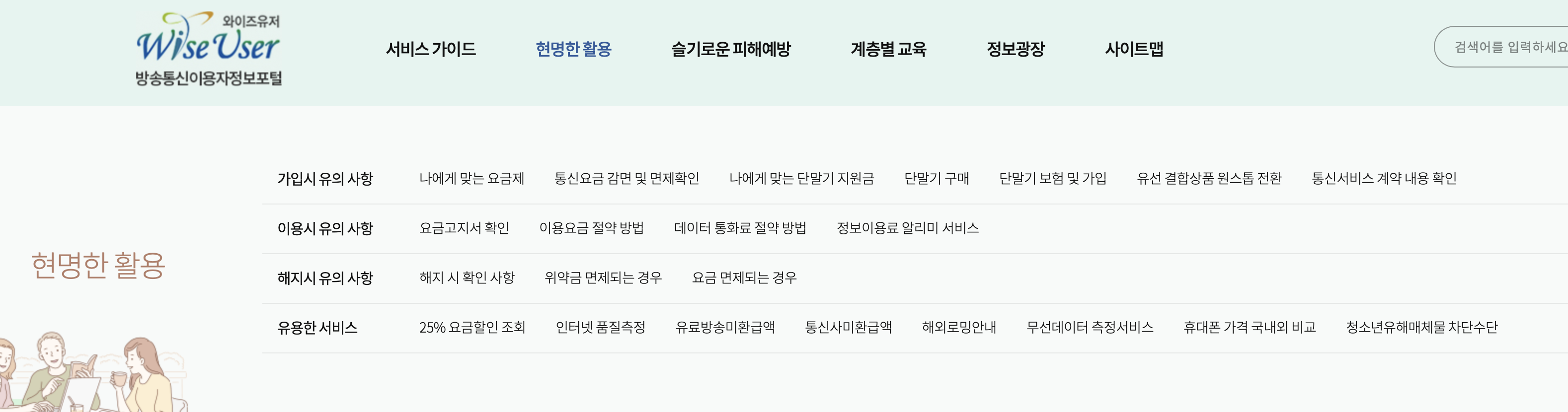 이런것들에 대한 예방과 교육 나에게 필요한 서비스를 선택할 수 있는 방법을 제시해주는 곳이 방송통신이용자정보포털의 역할입니다.