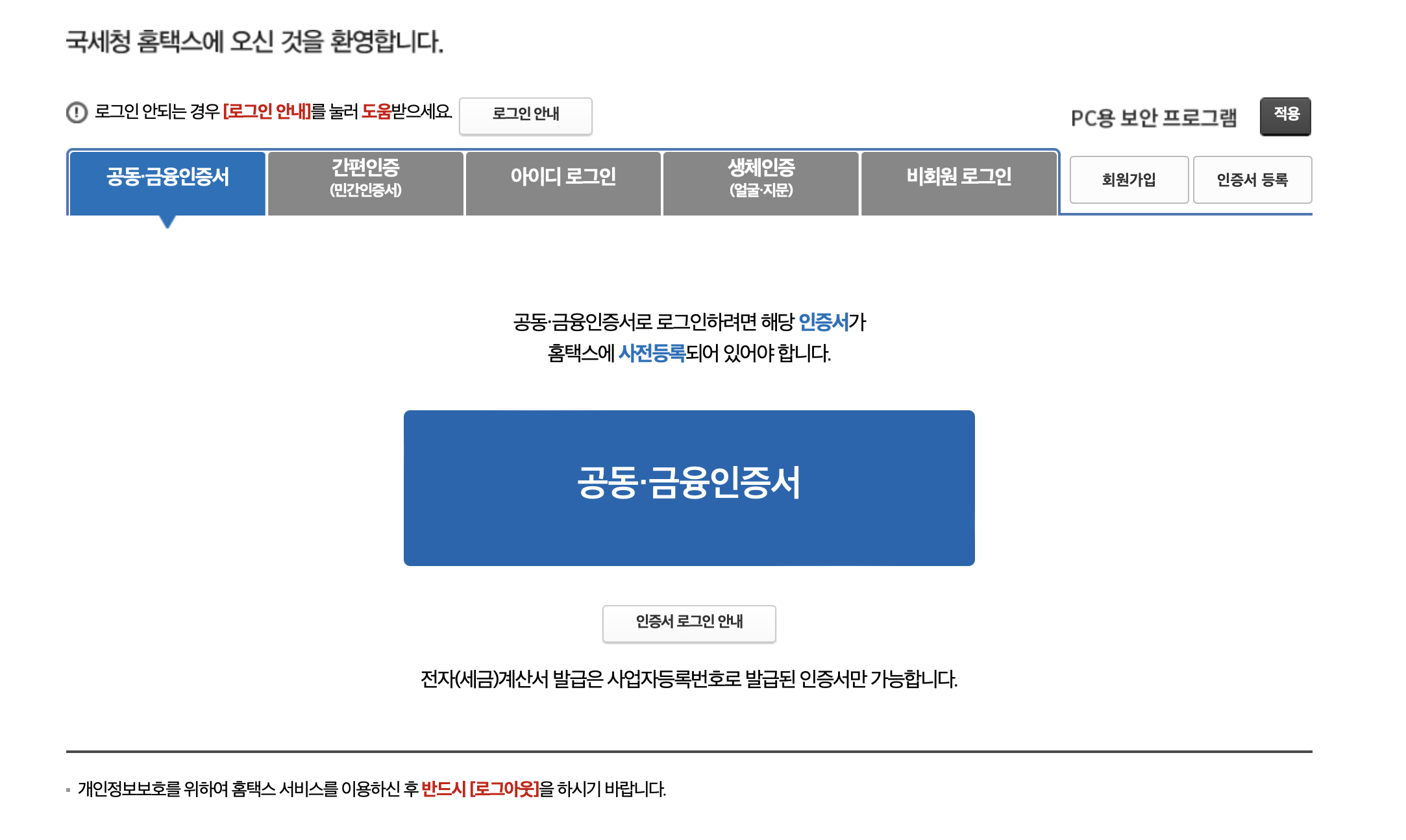 우선 홈택스로 로그인해주세요.