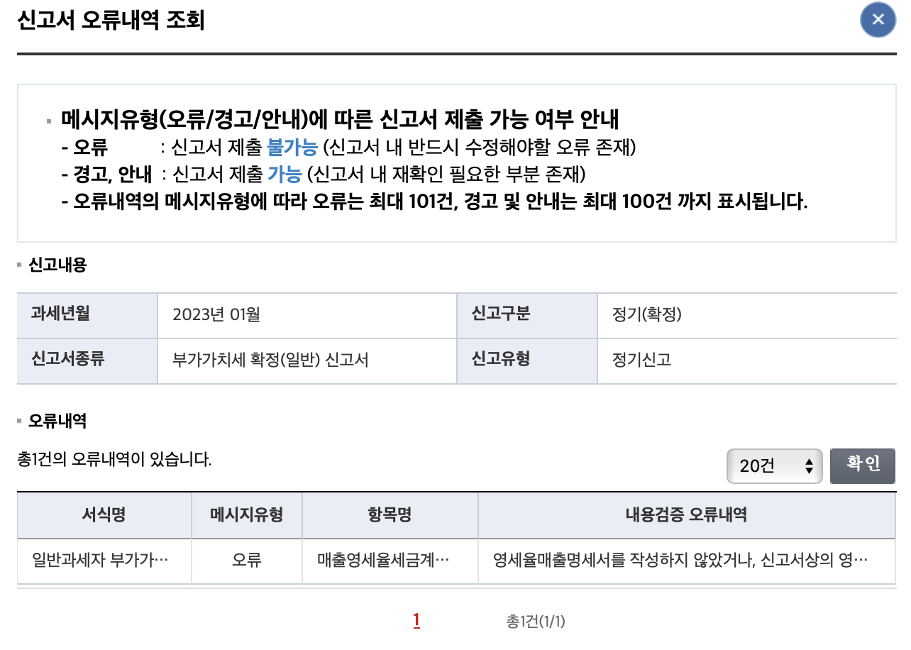 아래처럼 신고서 오류내역 조회라고 나타날 것입니다.