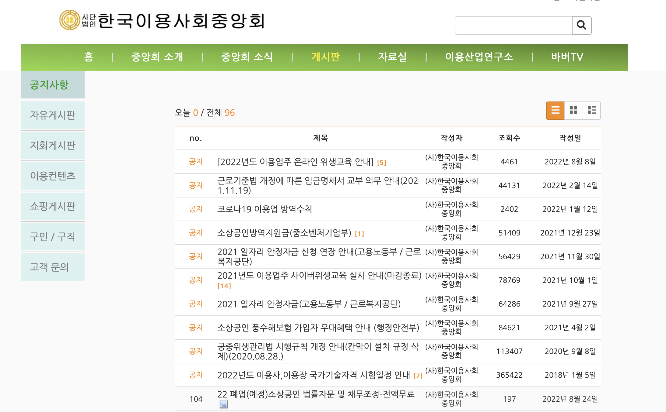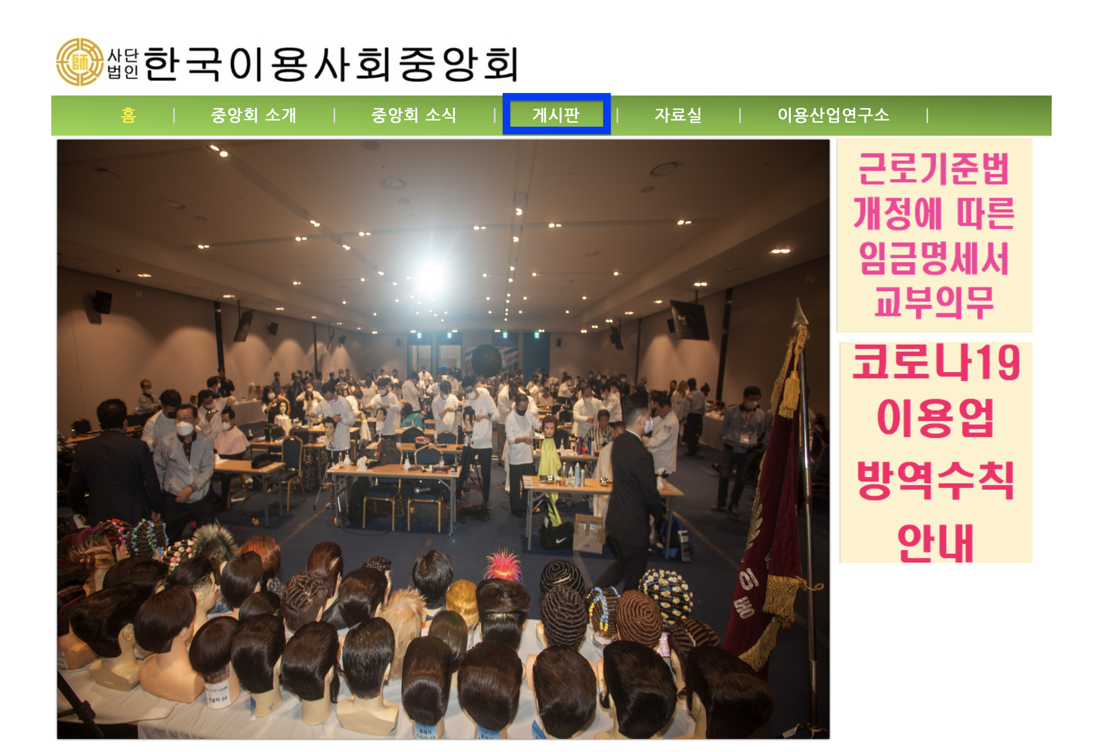 * 한국이용사중앙회 홈페이지 공지사항