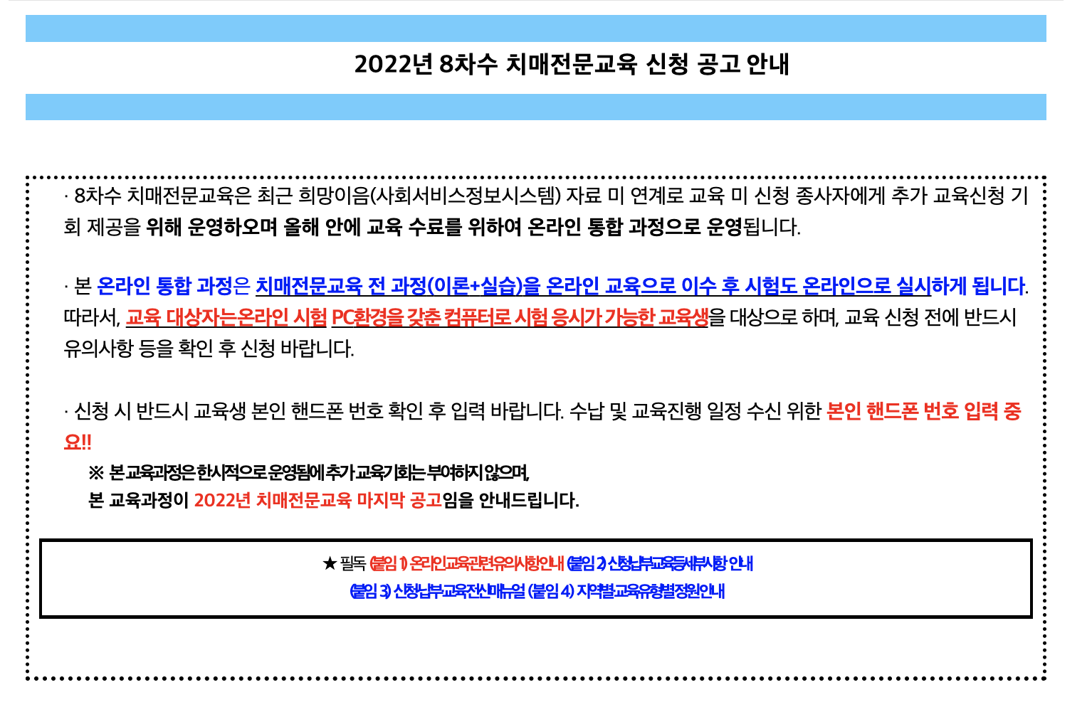 또한 2022년 치매전문교육 마지막 교육이라는 점도 꼭 참고하시기 바랍니다.