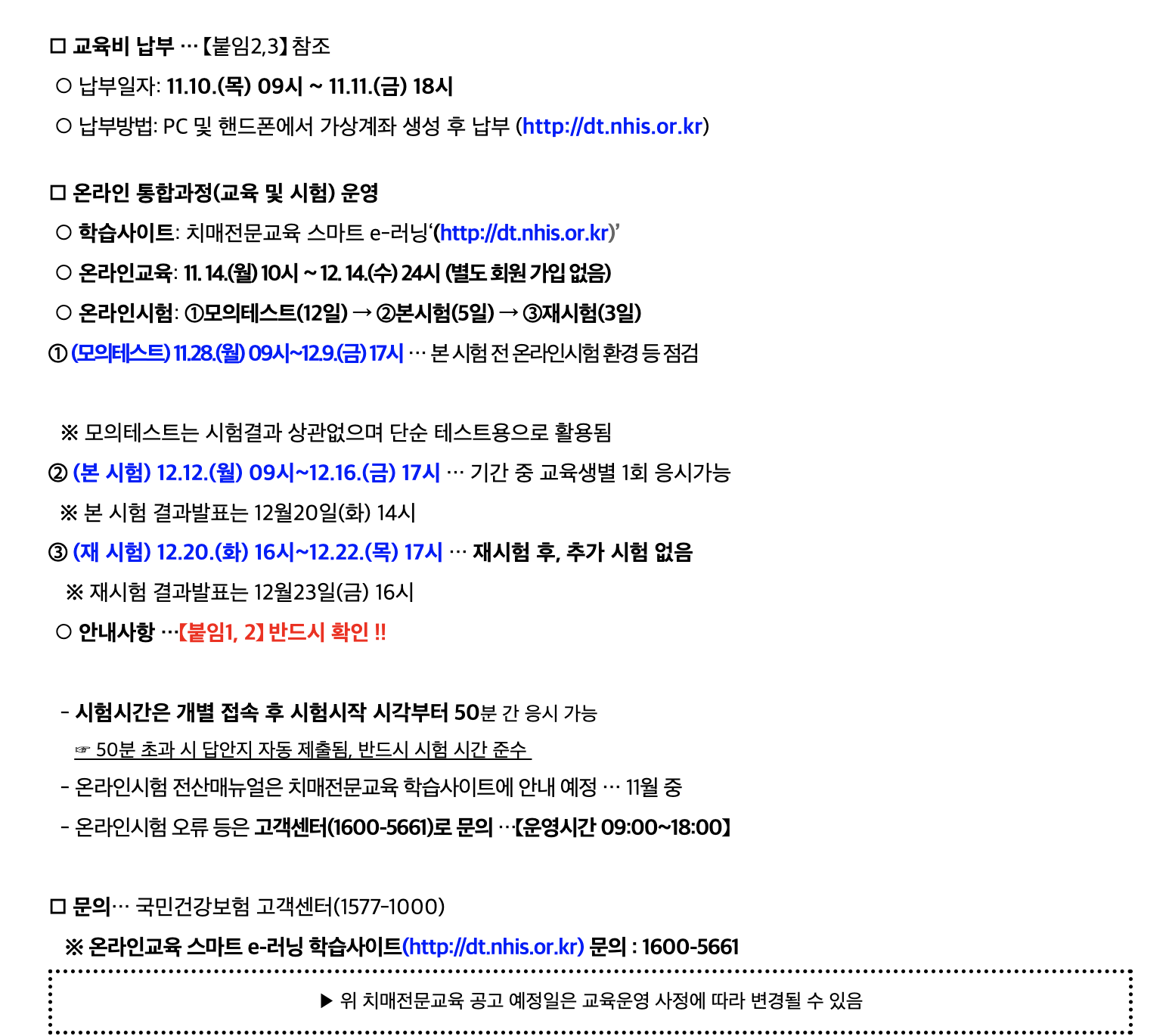 추가 교육 신청 기회를 제공하기 위해 운영하게 되는 것으로 오프라인 실습과 시험도 모두